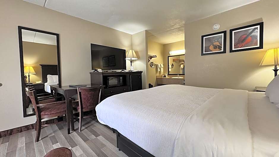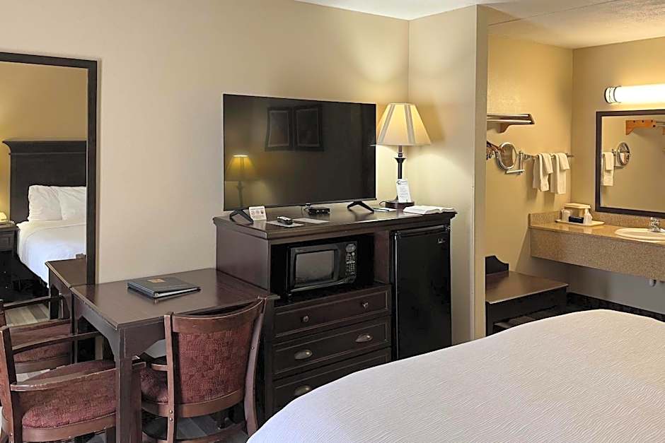 Cable TV with satellite channels is included in this room, along with a microwave and fridge.